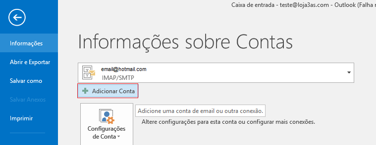 2 - Selecione Adicionar Conta.